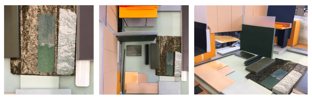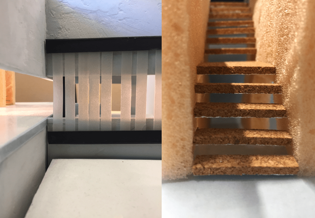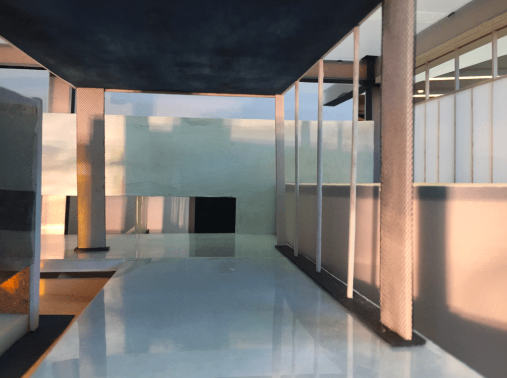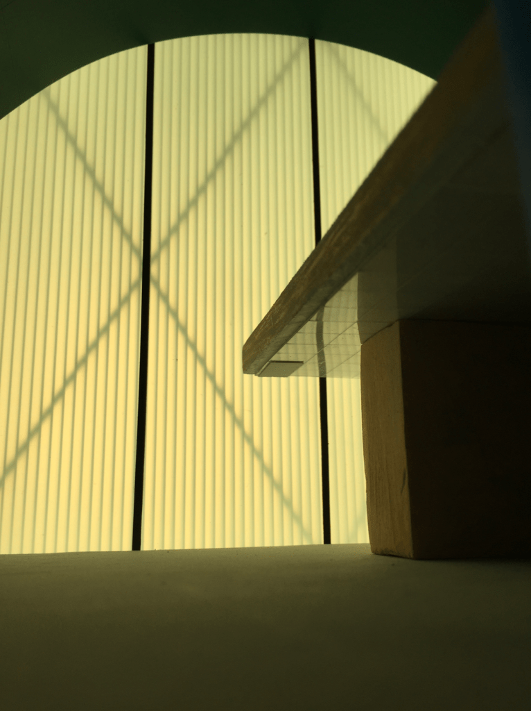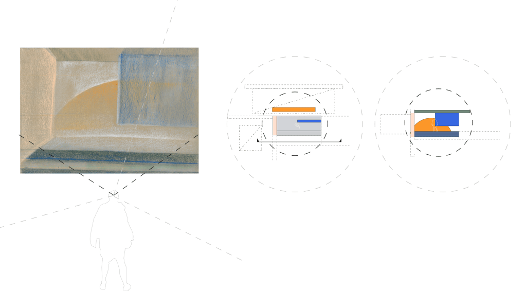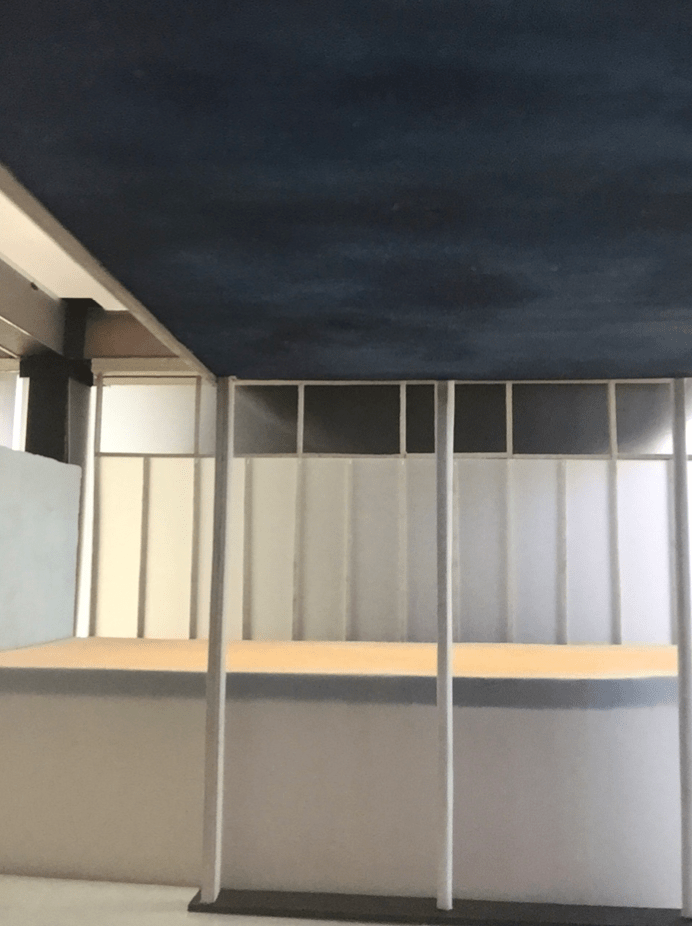 The method, based on a mash-up of theories about perception, consisted of interpreting a 2d-sketch into 2d drawings, and then translating these into models where materials were used to further de-code assumptions about how the spaces should be used. Detailed drawings were made based on questions the models posed.