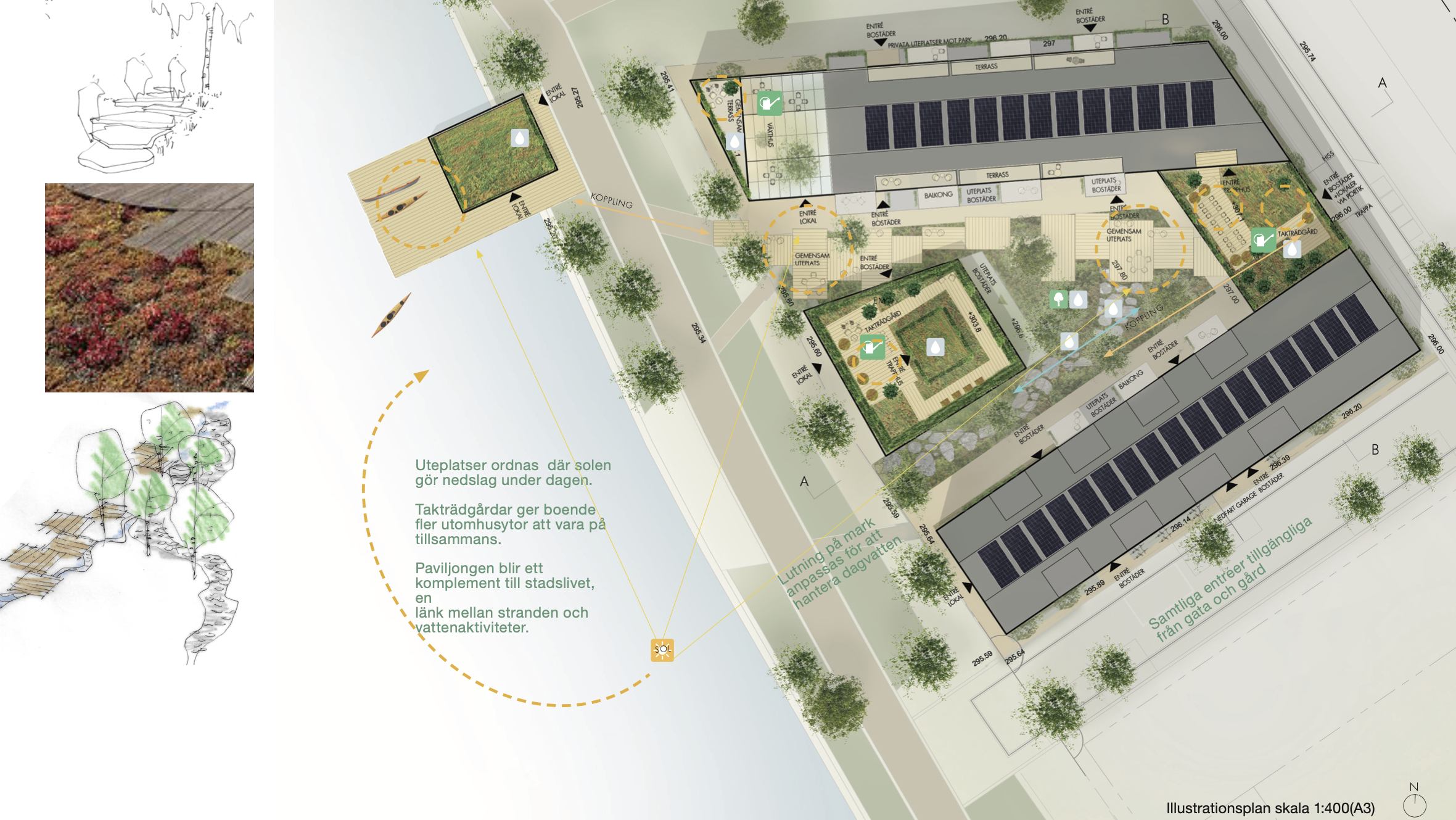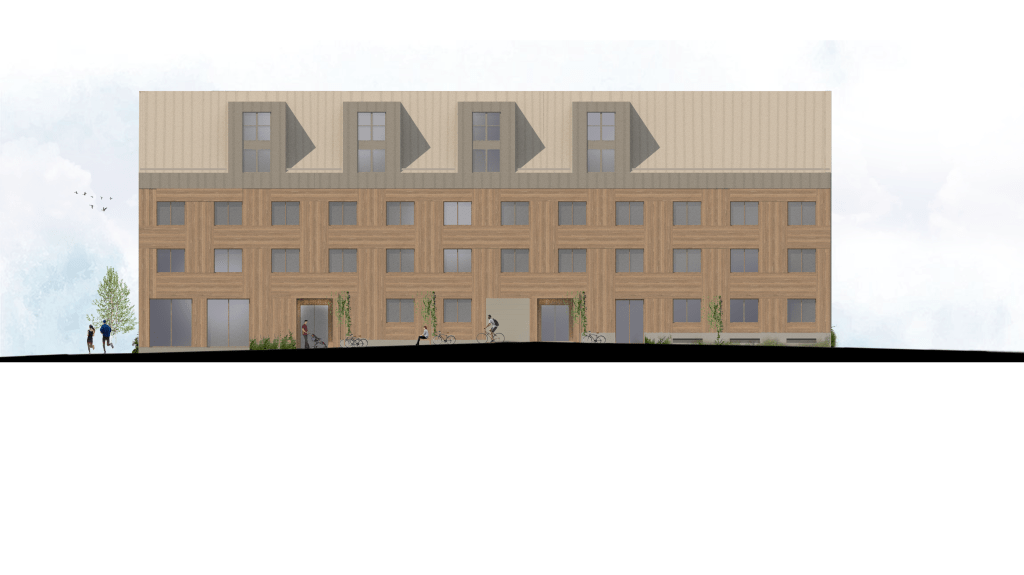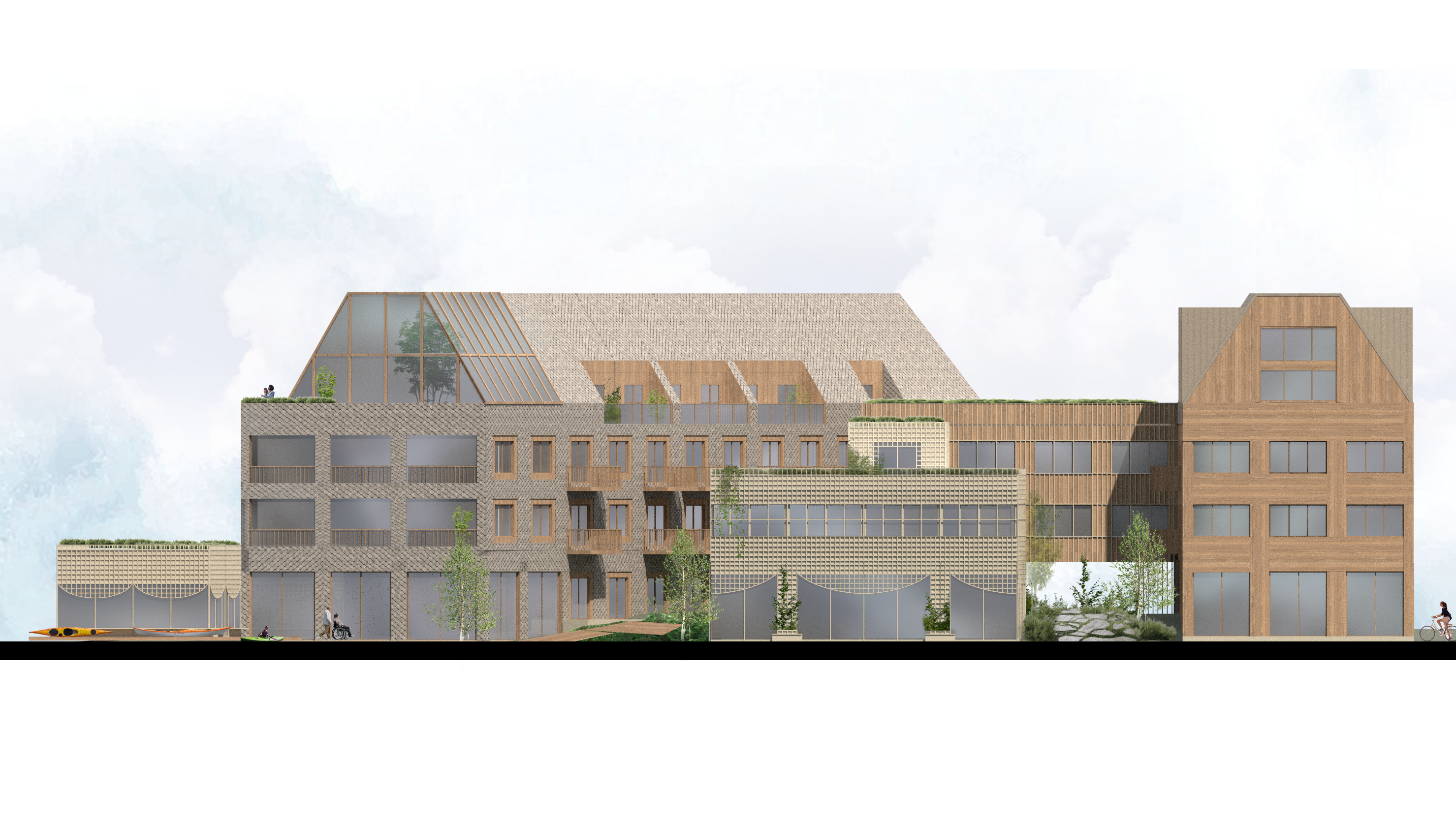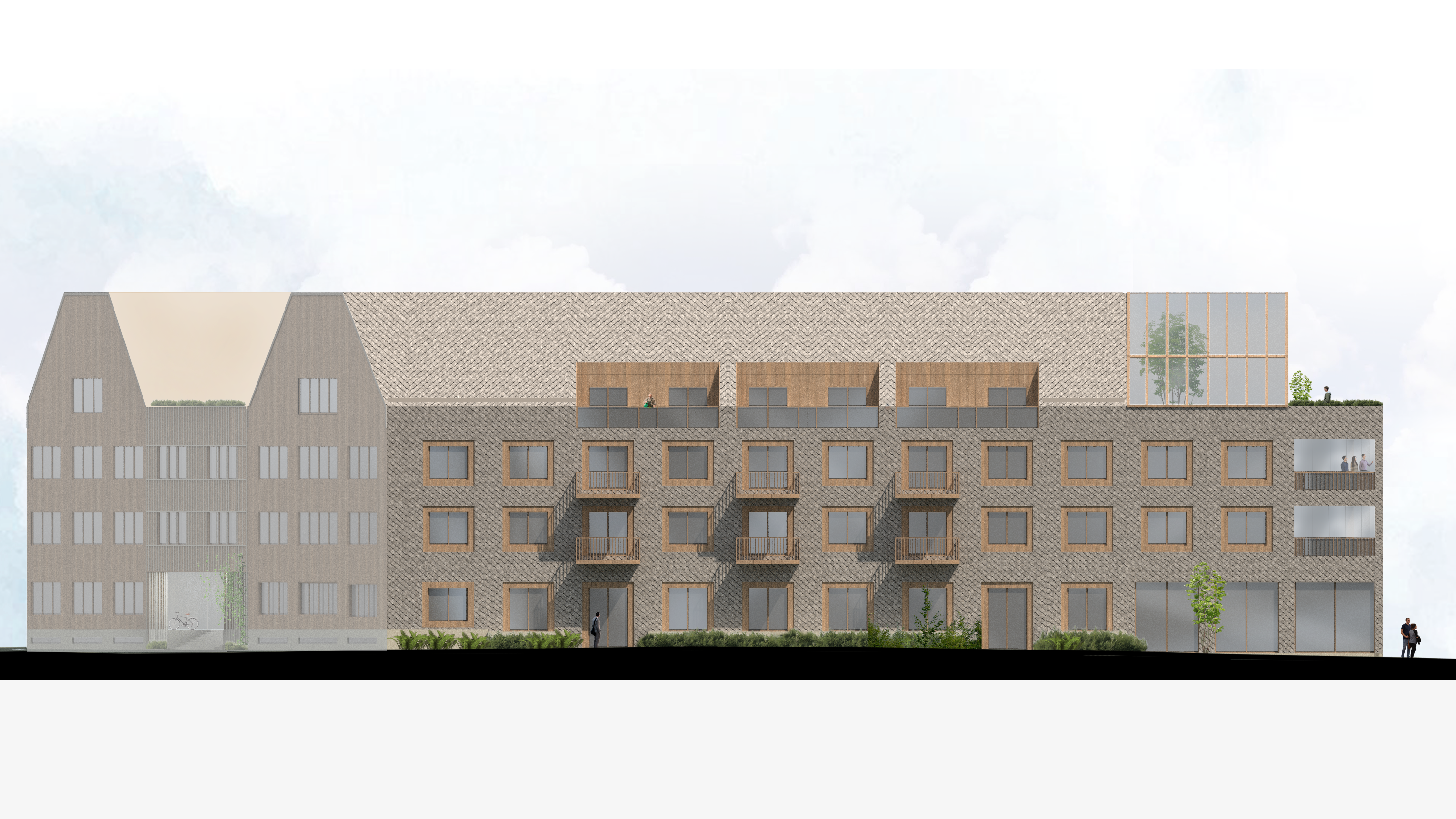 Development of housing in a new residential area of Östersund. The initial design-concept was based on the idea of a mountain (“fjäll”) – considering the fact that the buildings would be visible from far away as they were located right by the water. The proposal also responded to the municipality’s wishes that the architecture relate to the local environment, its conditions and traditions.