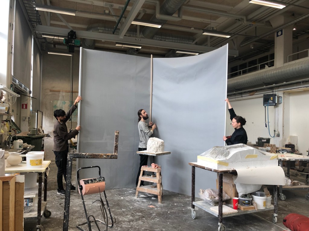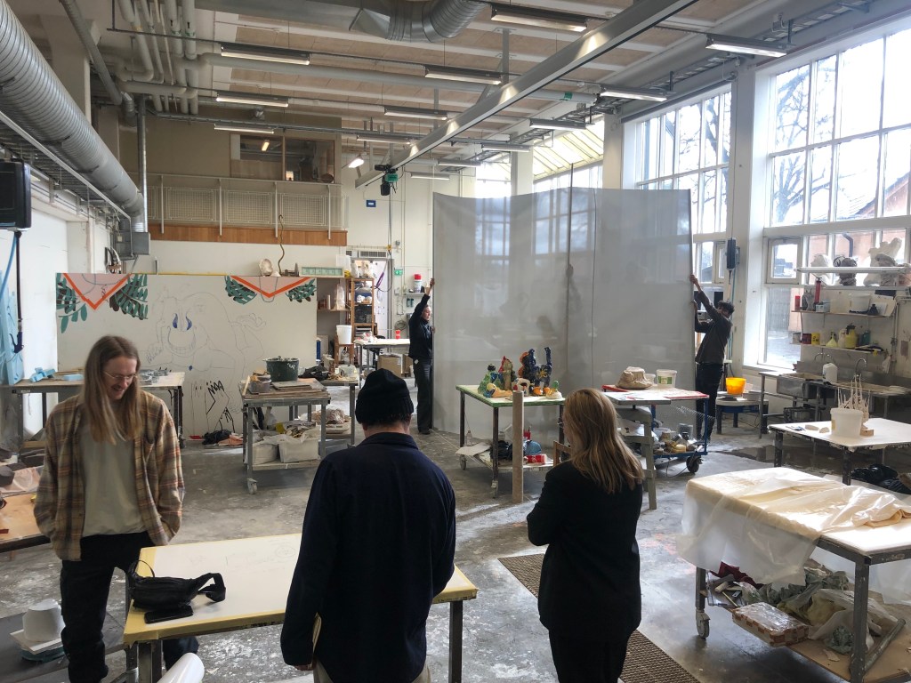 Starting with a tour of the familiar, sharing our different perspectives on the “same” situation and agreeing upon a curiosity about what spatial conditions, small additions, support-structures could assist the constantly ongoing process of learning, teaching and working alongside each other in the school, temporary collaborations between students and teachers at The Royal Academy of Art were formed. A few days were spent prototyping, recognizing it as a way to expand the perceived potential of a shared space.