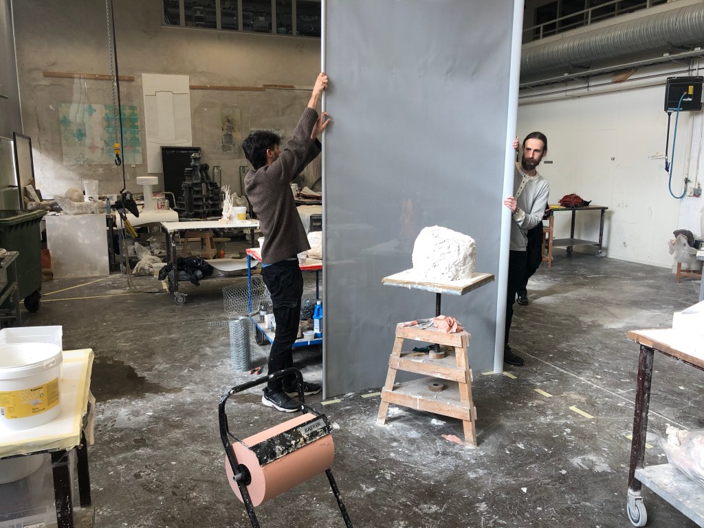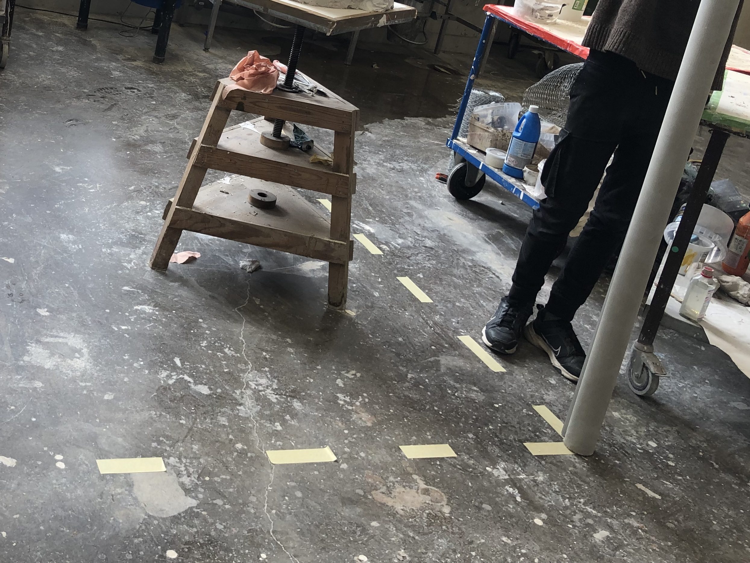 Recognizing the necessity of changing perspective, the value of curating a context, and how conditions influence work – as well as the necessity of constant spatial negotiation, agreed upon rituals and choreography in the space shared at the school – this prototype was one of a few developed. It invited discussions about signals in shared spaces – particularly invitations to discussion – as well as expected spatial potential and references that apprise you to spatial conditions.