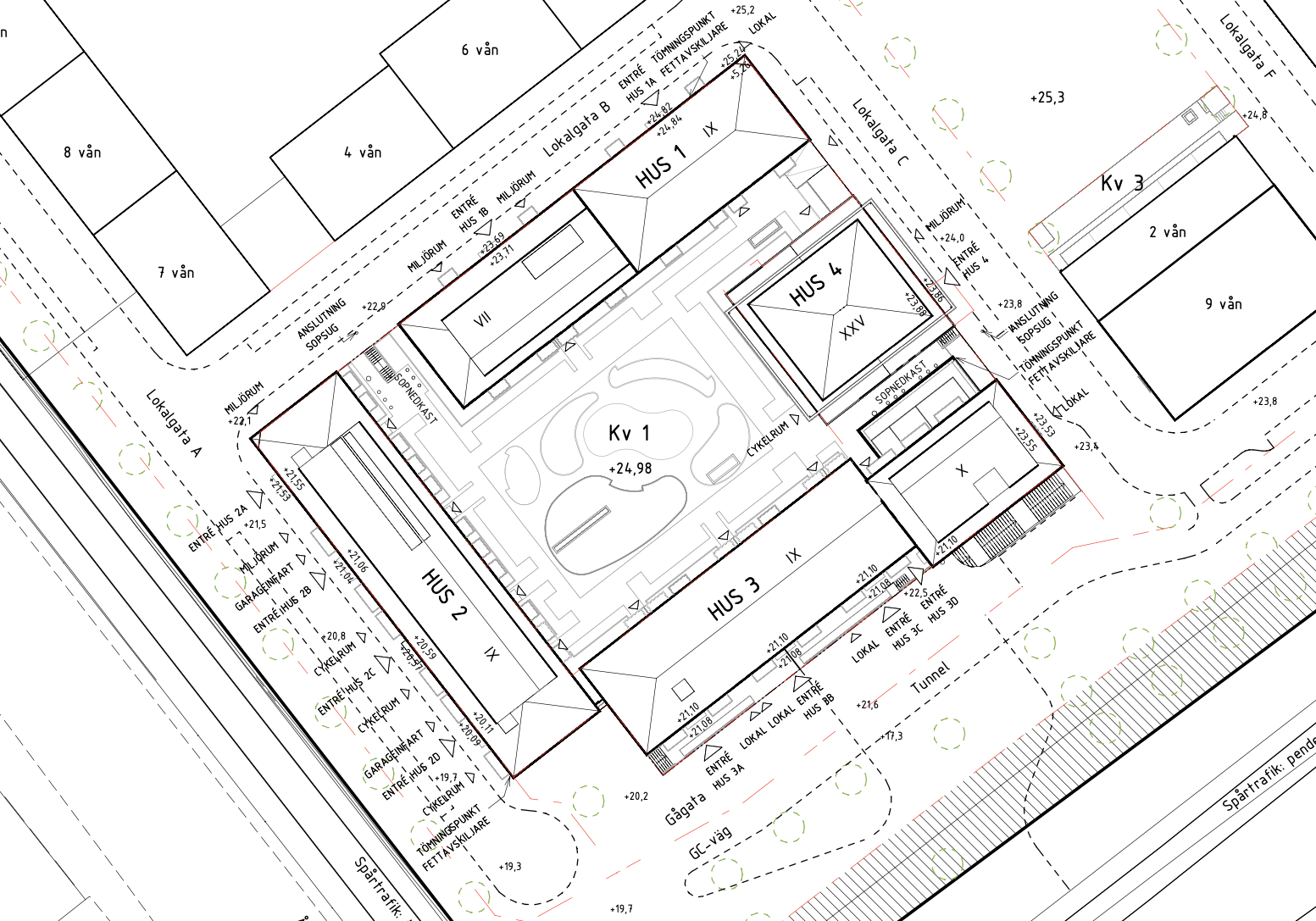 How do we participate in a process in order to learn from and design in dialogue with developers and builders to find relevant solutions that benefit the project? How do we address the difference between visual and functional sustainability-efforts? How do we find a common theme/expression within a larger structure to work with variations and kinship between buildings on such a large scale – that will hold up even if the functions of the buildings evolve? How do we relate to a very specific plan created in a context that has evolved? How do we take into account and utilize the possibility of using scale in our design when envisioning buildings that will be experienced from many different perspectives all over the city? With what methods do we test architecture before it is produced to stand for (hopefully) 100+ years?