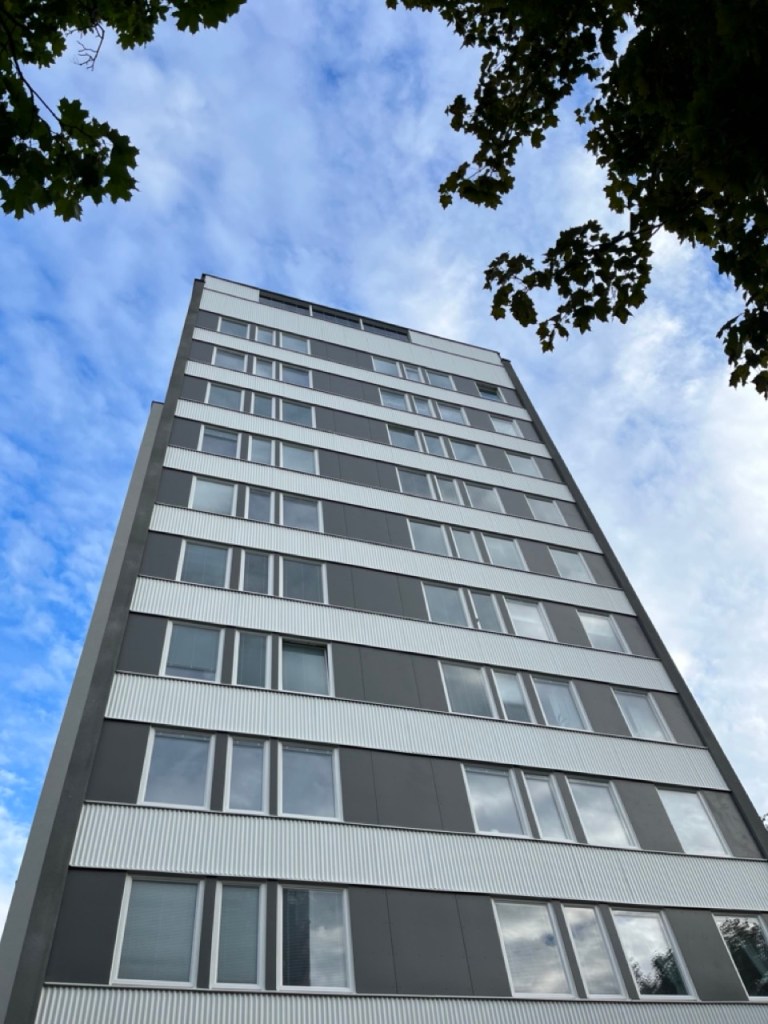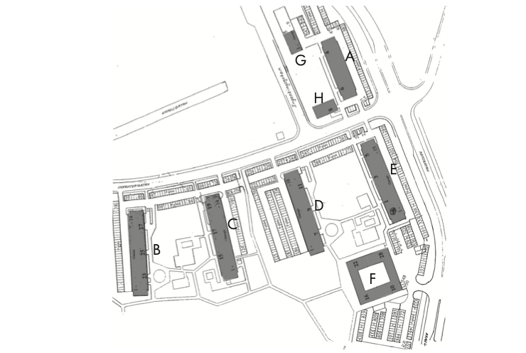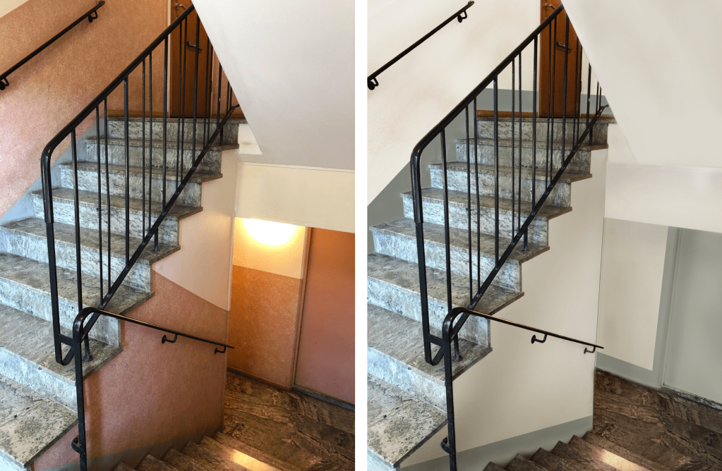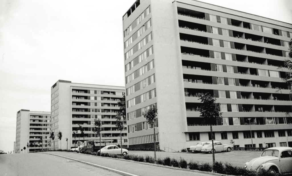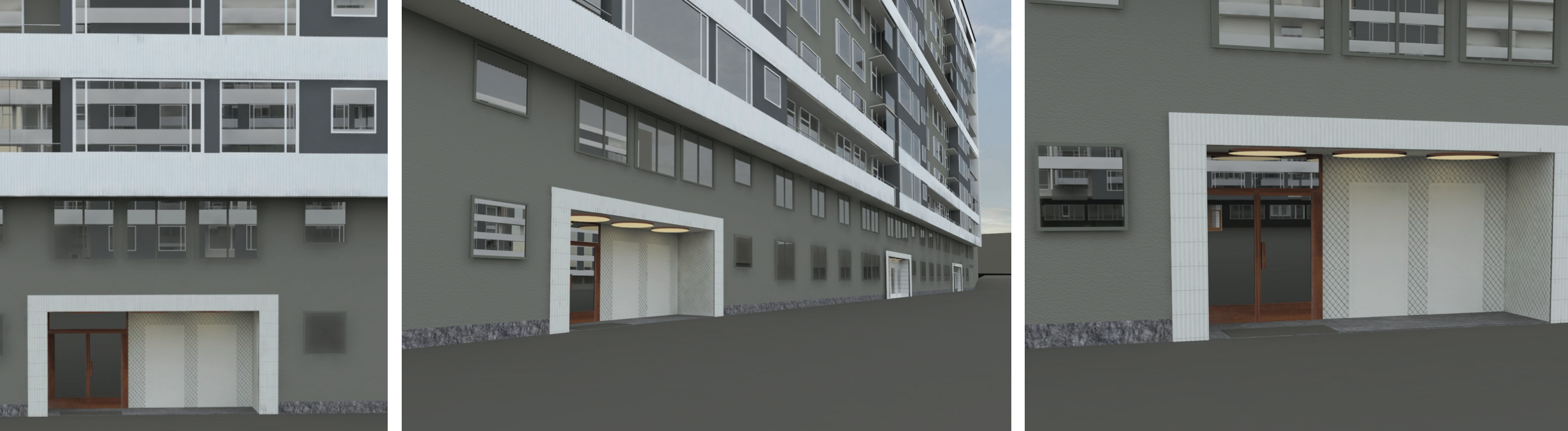 Development of concept for total exterior restoration (+renovations) as well as interior renovation of foyer and passageways for nine residential complexes built 1962-64. Inventory + material needed for permits, production, and decision-making process.